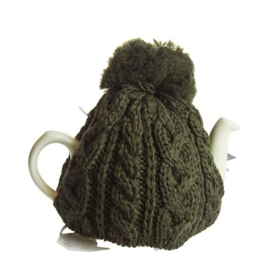 丁寧な編み目がティーポットのコロンとしたフォルムを優しく包み混みます。
