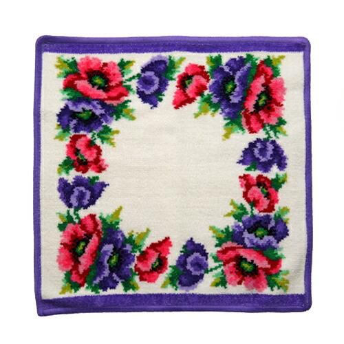 フェイラー (FEILER) ポピー タオルハンカチ 30cm ホワイト&パープル