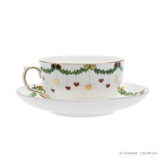 カップソーサーやマグカップなど、アイテムによってオーナメントが異なるので、ツリーの飾りつけのようにテーブルコーディネートをお楽しみいただけます。