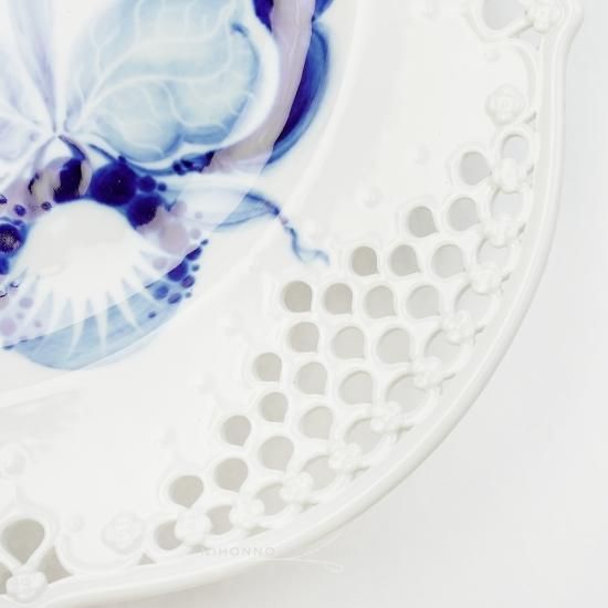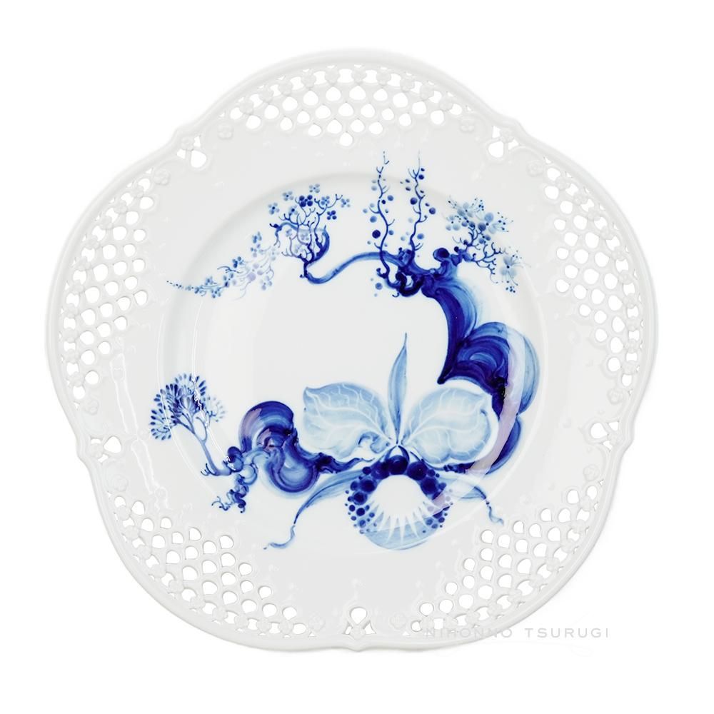 コバルト・ブルーの染付けで蘭の花を描いた<ブルーオーキッド>シリーズ。