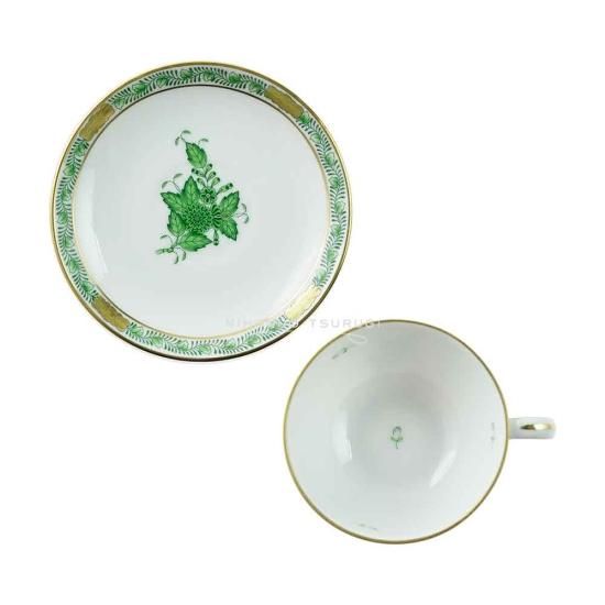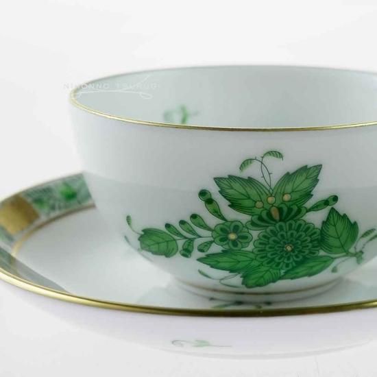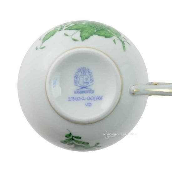 絵柄のパターンは「インドの華」が基本となっていて、 ヘレンドならではの落ち着きのあるグリーンと アクセントにゴールドを使用し、優美さが感じられる作品です。