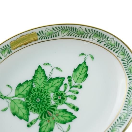 絵柄のパターンは「インドの華」が基本となっていて、 ヘレンドならではの落ち着きのあるグリーンと アクセントにゴールドを使用し、優美さが感じられる作品です。