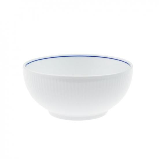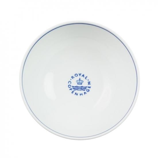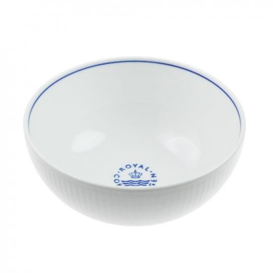 伝統的なフルーティング(縞のレリーフ)のデザインに、ロイヤルコペンハーゲンのロゴが一つ一つ手で押されており、縁はシリーズ名に反映された、ブルーのラインが手書きで施されています。